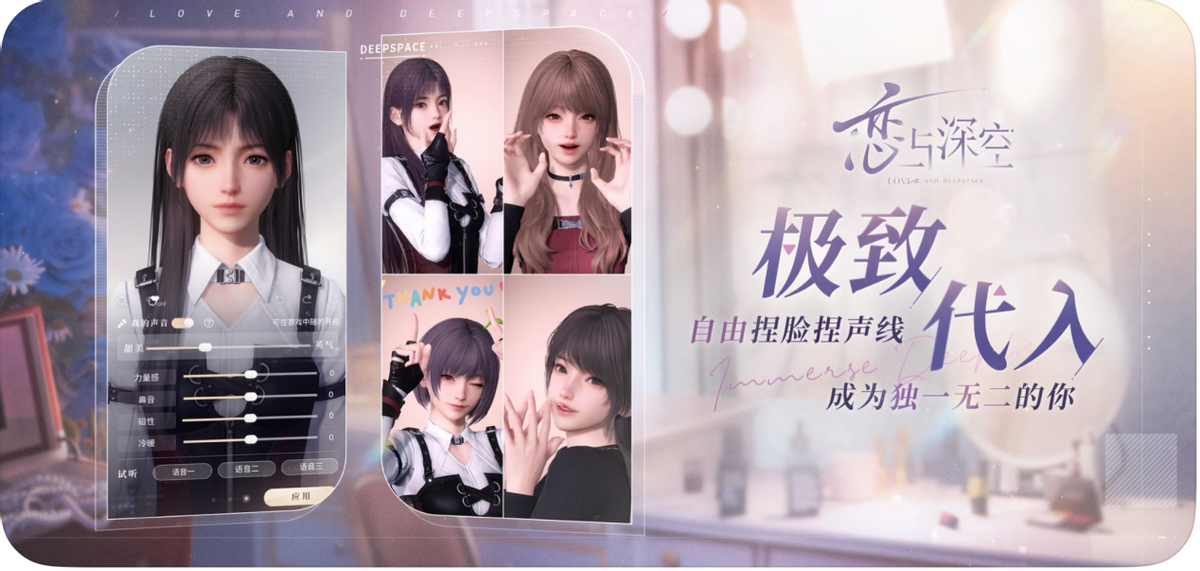 精细生动的捏脸系统,让我们在临空市有着独属于自己的身份和面貌;自由多样的声线捏制,每一句喃喃都从现实传递到了他的耳边。不管是清晨还是日暮,每当我转身,眼中都是他的面庞,一切都是我和他,真实的故事。值得一提的是,《恋与深空》在与男主的主界面互动之中,创新性的引入了语音对话。当你贴近麦克风,与他倾诉你的思念和难过时,他也会给出生动的回复。真正在乙游中实现了,每一句我爱你,都会听到你的回应。