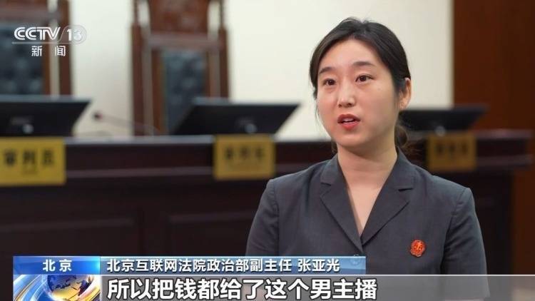 北京互联网法院政治部副主任 张亚光:本案的男主播通过一些诱导等行为去跟粉丝进行索要这种充值打赏的行为,是一个非常不好的示范,包括这个平台对于主播管理方面也是存在着较大的漏洞,对于这种相对可能有引诱性质的主播没有及时采取管理和处罚措施,我们认为平台和主播都存在重大过错。