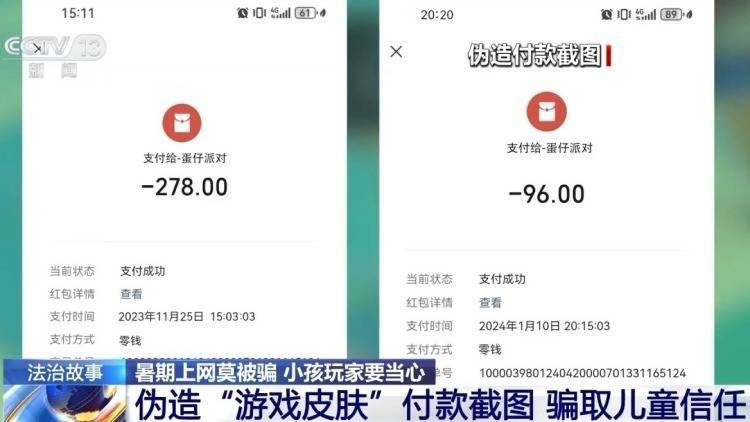 伪造购“皮肤”付款截图 骗取孩子信任