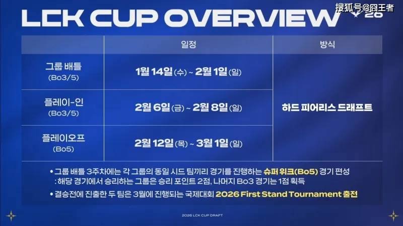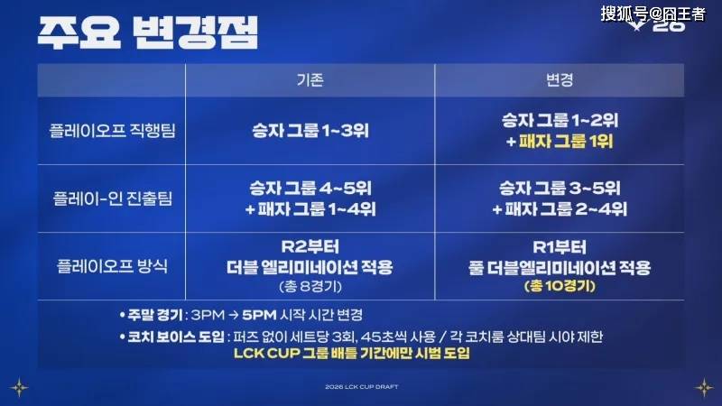 各位喜欢英雄联盟的老哥们注意了!2026年LCK CUP的赛制和分组终于官宣了。对比去年的版本改了不少地方,不管是看比赛的,还是关注战队的,这波变动都得重点划起来——简单说就是,比赛会更刺激,战队竞争更狠,咱们观赛体验也直接拉满!