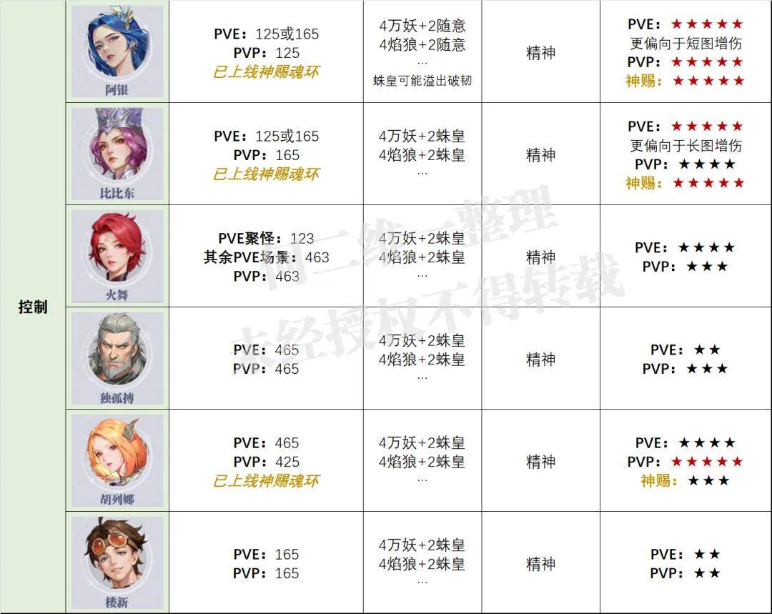 第三部分控制系角色则此次并无太大变化,不过控制比比东随着神赐魂环的上线则在此于长图战斗中表现出了不俗的实力,作为开服普池角色的她能具备如此之久的强势期,也颇为不易了。