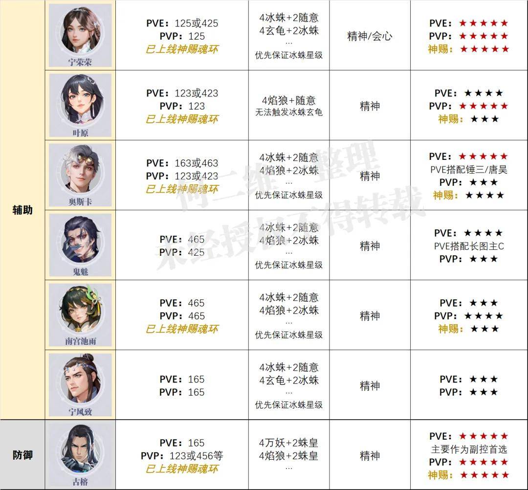 最后的辅助和防御咱们一起说,辅助方面依然是宁荣荣全能,叶原PVP和奥斯卡配唐昊的思路,而防御系方面古榕则依然是六边形战士,几乎所有的战斗场景都有不错的发挥,PVE中则是更多作为副控的首选来上阵,有神赐的前提下优先级非常之高。