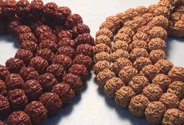 金刚菩提品相不一样,所以就有好坏贵贱之分,决定它变红的重要因素有油性,密度,皮色等等,盘玩时候变红的时间也各不相同,红皮上色快,后期颜色较深、黄皮和姜黄皮上色慢,后期颜色较浅。
