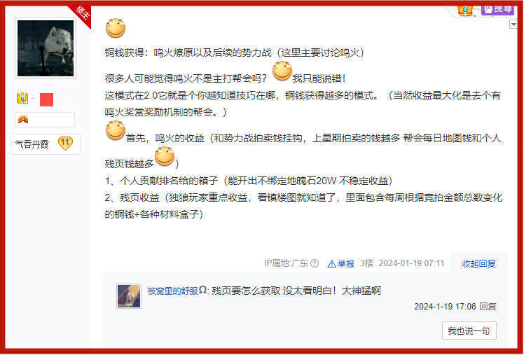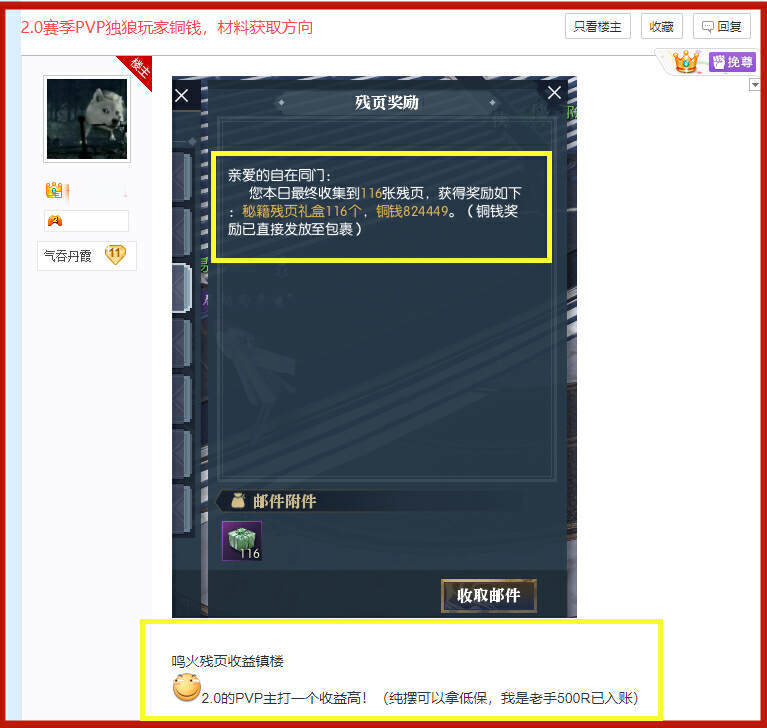 在这方面,由于积累了老玩家已经积累了三个赛季的经验,对各个玩法的收益非常清楚,因此有一位大神玩家,只用了一天时间,就通过S3赛季刚刚推出的鸣火燎原玩法,收获了116个秘籍残页礼盒和82万铜钱。
