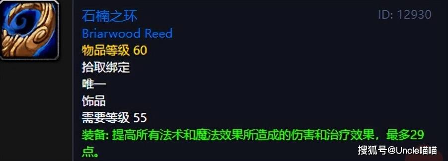 黑上稀有精英杰德掉落的石楠之环,可以说不是被毛走就是在被毛的路上,因为他是地球时代初期,全法系职业的最强饰品了,29点的法术伤害和治疗效果,其实用性必然是恐怖如斯直戳天花板,喵叔怀旧服时期,也就牧师有幸需求到一款,至于我的法师点菜都去了好几次都没能够拿下,你敢信?