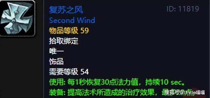 这款饰品就是高端治疗才能拿下的存在了,黑石深渊BOSS傀儡统帅阿格曼奇掉落,这东西不仅常驻的治疗效果高达22点,还有可控的法力值续航保障,真的是谁用谁知道的极品,而且54级就能佩戴也是能用到熔火之心没问题的超保值饰品了,不过这东西真的很少有治疗玩家能够佩戴,反正喵叔身边就没见过,包括喵叔牧师刷了几趟也没能拿下,入手难度颇为恐怖如斯!