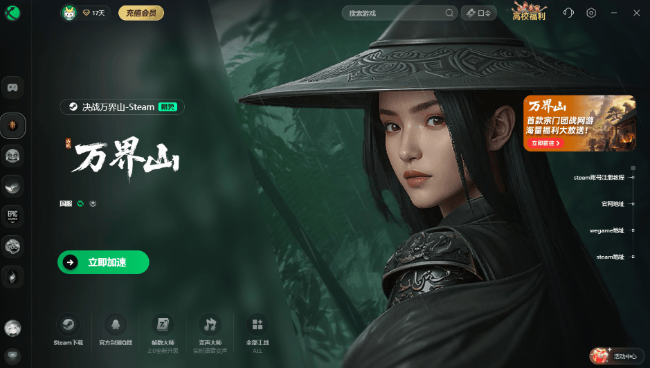 当然,看到全球同服,玩家们担心的自然就是游戏卡顿的问题了,还有登录方面的。这个时候,你的好伙伴就来了,没错,正是迅游加速器,要知道,迅游加速器可是《决战万界山》独家合作的加速器,玩家们可以直接免费用,这一点是真的良心,必须点赞一波。