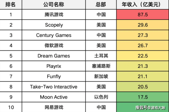 资源、用户、IP与渠道不断向头部集中,中小厂商想要突围,难度正在指数级上升,而在这份榜单中,最刺眼的存在无疑是腾讯游戏,87.5亿美元的年收入,几乎形成了“断崖式领先”,比第二名Scopely高出将近三倍,这种差距,已经不是单一爆款能解释的,而是体系化优势的集中体现。