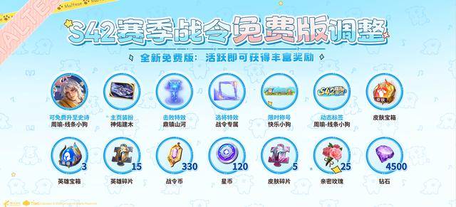 S42免费版战令的奖励也有所改动,最大的改变就是将S42赛季皮肤移至免费版战令奖励中。只要战令达到5级,就可以免费领取周瑜的S42赛季皮肤,如果战令达到40级,就可以免费将周瑜的S42赛季皮肤升级为史诗品质,拥有全新的史诗级特效。