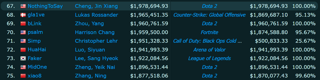 要知道作为LOL第一人的Faker,虽然年薪和商务活动的收入要远高于DOTA2选手,但是在奖金收入方面哪怕是李哥,也远低于DOTA2的很多选手。截止目前,在外媒奖金收入排行榜上Faker只排在73名的位置,而这份奖金收入排行榜当中排名更靠前的,几乎绝大多数都是DOTA2的选手,可见刀塔2的奖金收入要远比其他项目高得多。