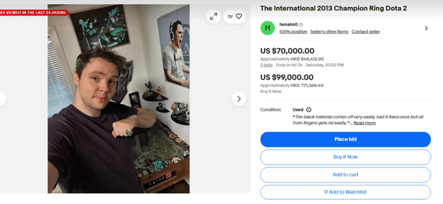 然而让人诧异的是,近日前DOTA2传奇选手Bulldog罕见的重新进入大众视野,而原因则是对方在Ebay上公开拍卖,这让人始料未及。毕竟DOTA2的冠军戒指象征着选手在该领域取得的最高荣誉,捧起冠军盾并戴上冠军戒指是无数DOTA2职业选手的终极目标。