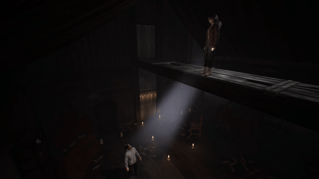 举个例子,游戏里有一个小桥段是玩家被鬼追,需要两人一起把门的两根门栓拉开。这时候,你的命运不只掌握在自己的手里,还需要同伴配合把另外一侧的门栓拉开,才可以通过。类似这样在压力下的双人合作体验,在我们游戏里会有很多。