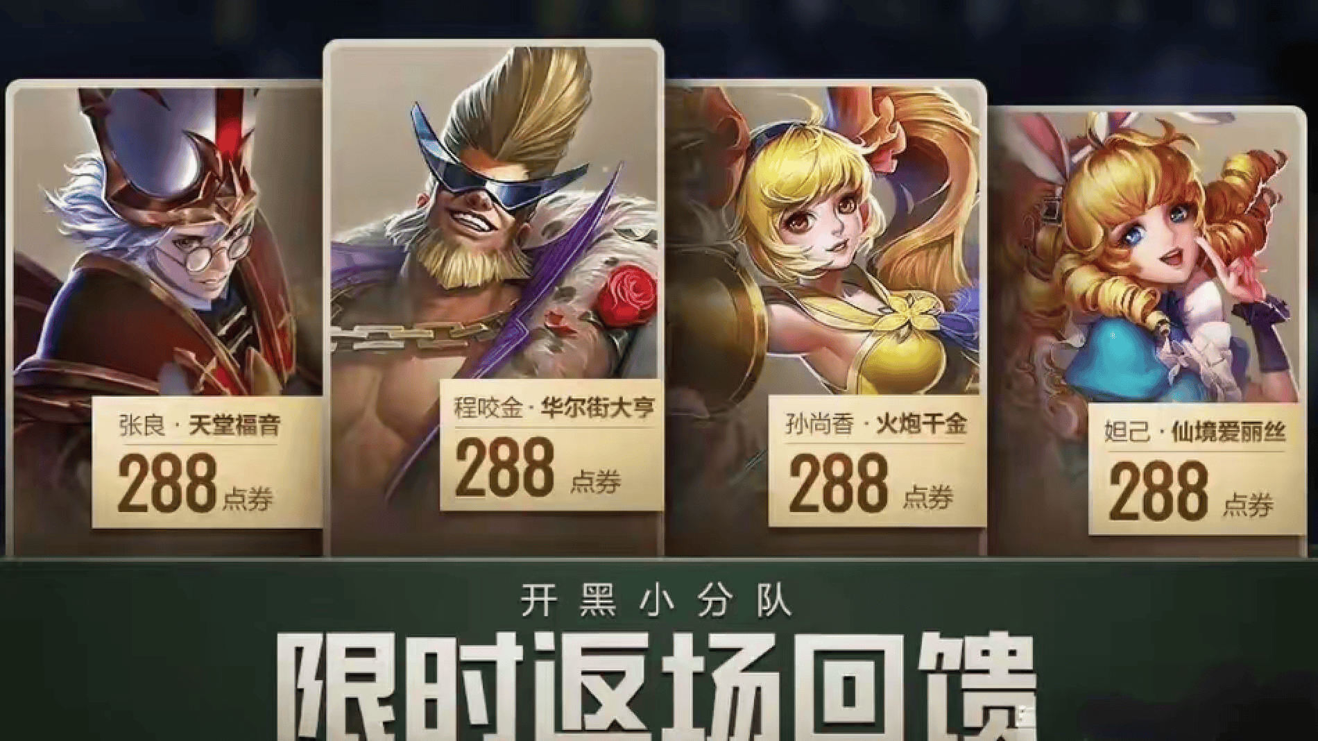 返场的方式自然也是点券礼盒抽奖,或者在周年庆期间,程咬金和张良的皮肤也就会返场了。