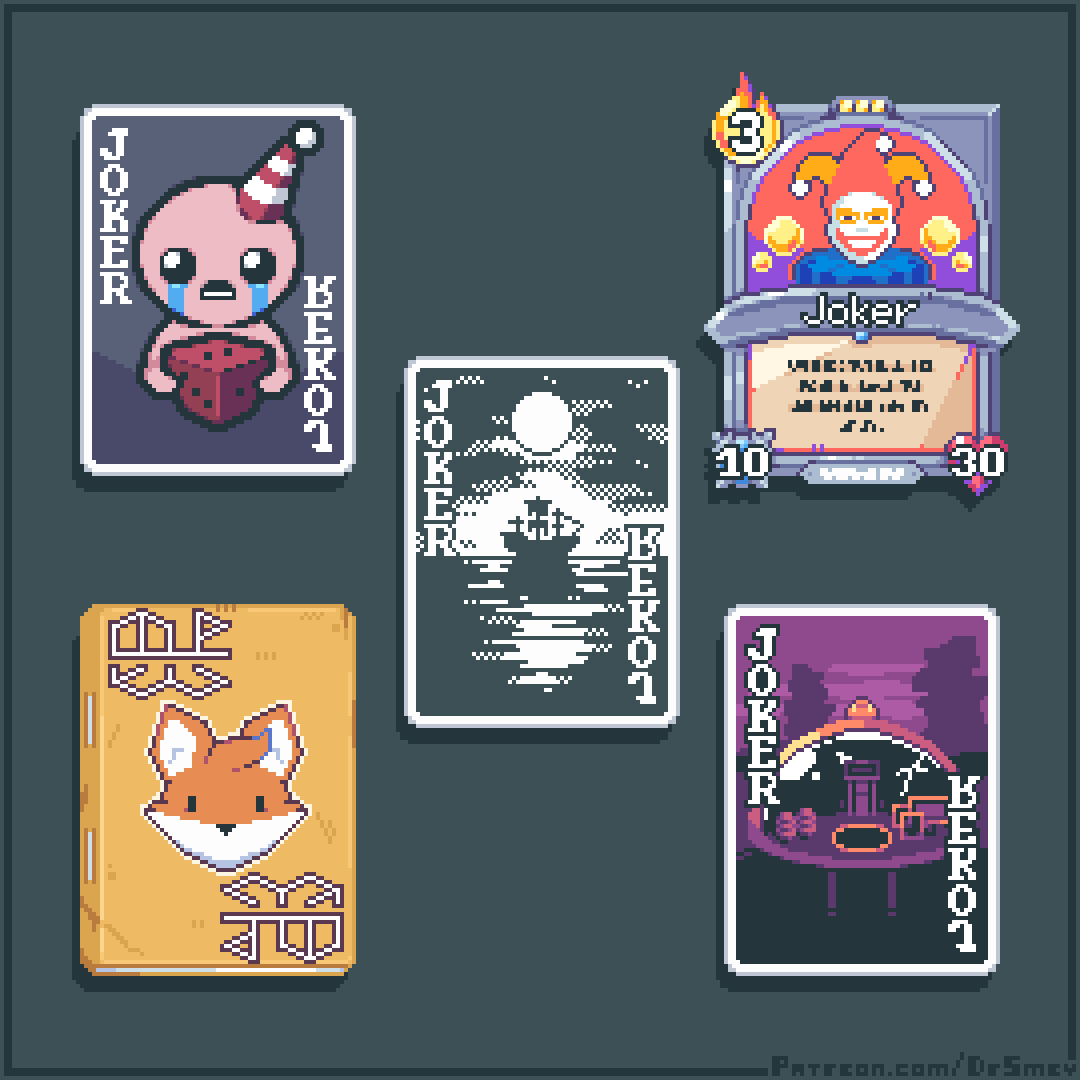 2. 像素艺术欣赏:如果《小丑牌》和其它独立游戏联动。灵感源自《以撒的结合》《怪物火车》《奥伯拉丁的回归》《TUNIC》和《穹顶守护者》。