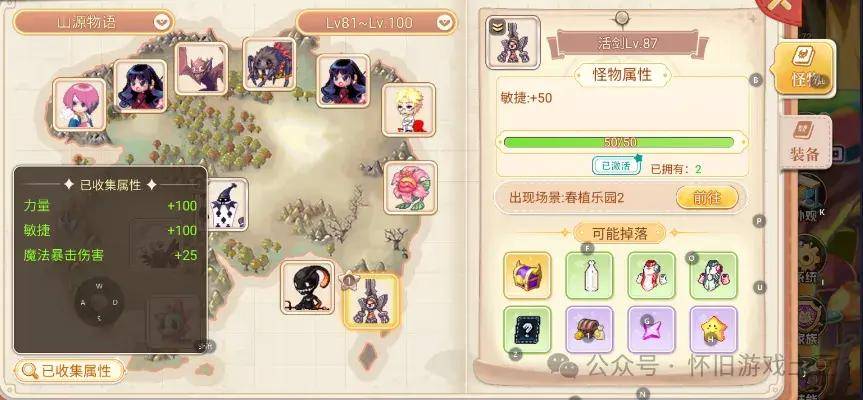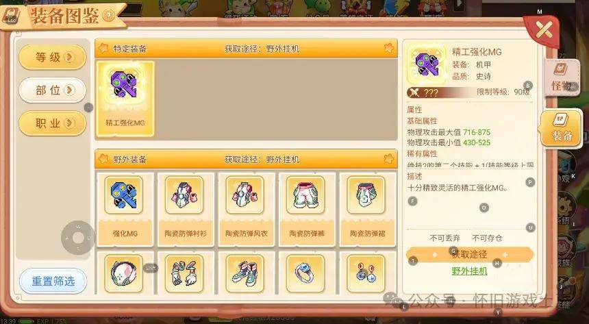 其次就是图鉴。我们可以通过图鉴查看一些稀有的高品质装备的掉落途径,并且我们可以使用打怪掉落的怪物图鉴卡来激活图鉴,激活成功后可获得图鉴收集属性。
