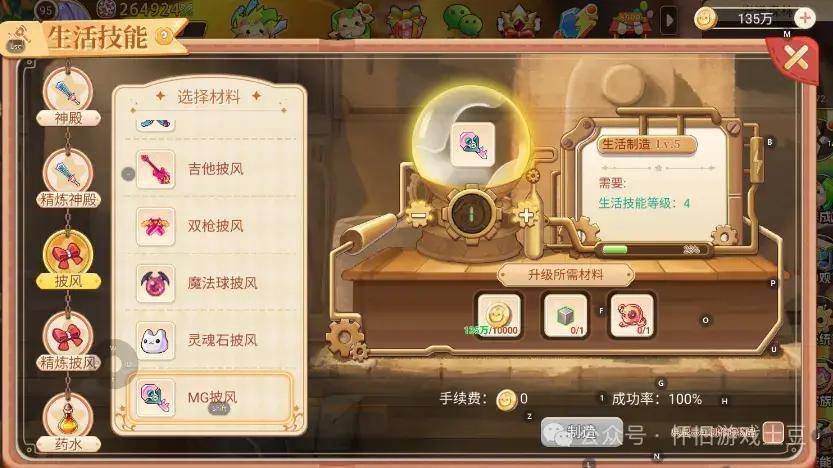 最后就是生活技能。在生活技能中我们可以通过收集各种材料来制造我们需要的装备,有些装备,我们无法通过刷野、打怪、过副本来获得。比如披风,我们需要在生活技能中选择对应职业的披风来制造,提高咱们的属性和评分。披风的升级和咱们其他装备一样,直接使用强化石强化就可以了。
