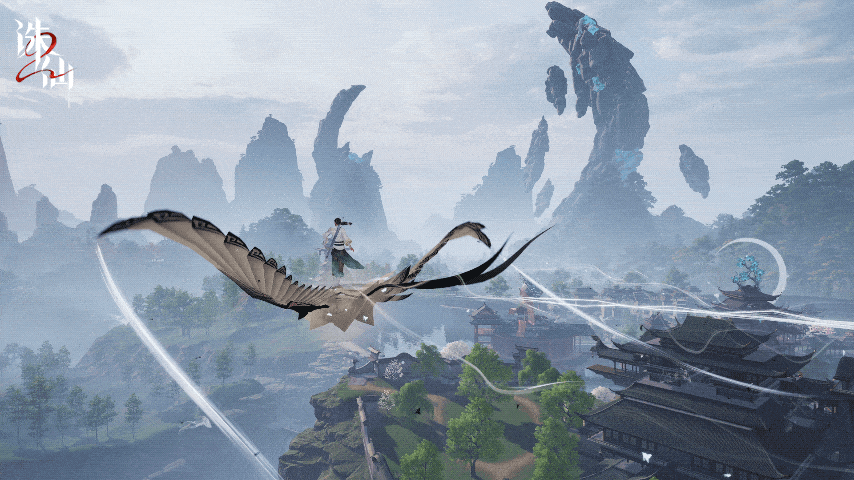先来说说《诛仙2》是如何打造真正的仙侠大世界的,既然沾了“仙”字,那必得仙气飘飘,狠狠拿捏住氛围感!无论是连接学府与中原的那把令人望而生畏的巨大诛仙剑,还是倒悬于天边的华丽学府,还是酷似牛首造型的凌波山,亦或是从皎皎碧水中鱼跃而出的清雅月宫,无一不叙述出仙侠世界的奇幻与灵动,得益于UE引擎和高清反射效果等“黑科技”加持,整个仙侠世界“活”起来,也“灵”了起来:分时分段实时光照+物理投影,不仅可以感受真实光影变幻,进行环境交互,就连落雨后桥面上的积水,都可以由近及远反射出山峦、建筑的阴影,沉浸式修仙名不虚传~