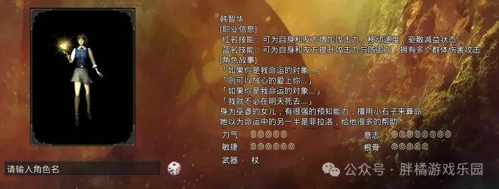 韩智华身为巫婆的女儿,具有独特的技能和玩法。在属性加点上,前期可用枪加点优先敏捷提升生存环境,后期可加点意志发挥魔法攻击。其技能多样,蓝名技能如智慧梵音增加防御力,红名技能如吸灵符能将攻击后敌人 HP 损害的部分转移到自身。在装备选择上,要根据不同阶段和技能特点灵活搭配,充分发挥其攻击和辅助能力。