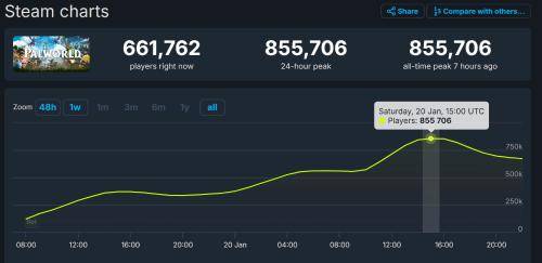 3.《幻兽帕鲁》Steam在线玩家峰值破85万