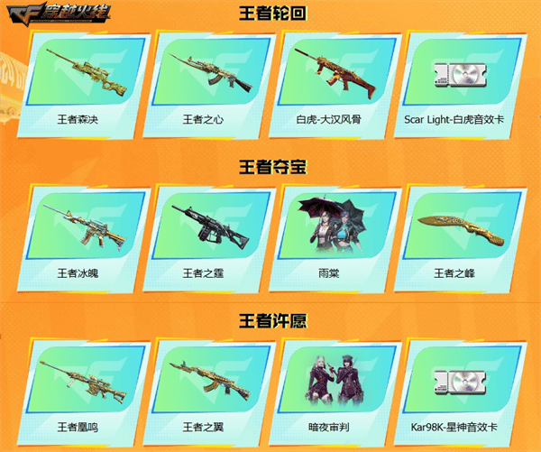 灵狐合约的专属福利则包括黄金体验卡、自选军火体验卡与CFvip权限三个主要内容,玩家累计签约次数即可享受不同权益,而通过自选军火体验卡,各位CFer将可以在奖池内自选心仪的武器道具进行试用。
