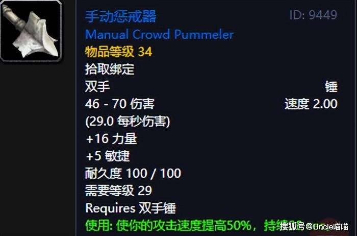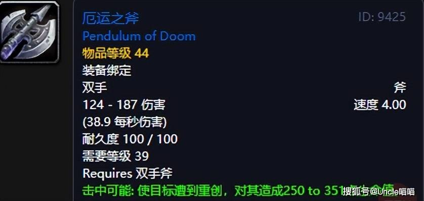 差点就给魔兽世界地球时代最欢乐也是毛伤害最恐怖如斯的武器给遗忘了,他就是血色修道院武器库的破坏者,这东西对于阶段性能拿双手斧的物理职业是必刷的,转着升级的快乐喵叔至今难忘!