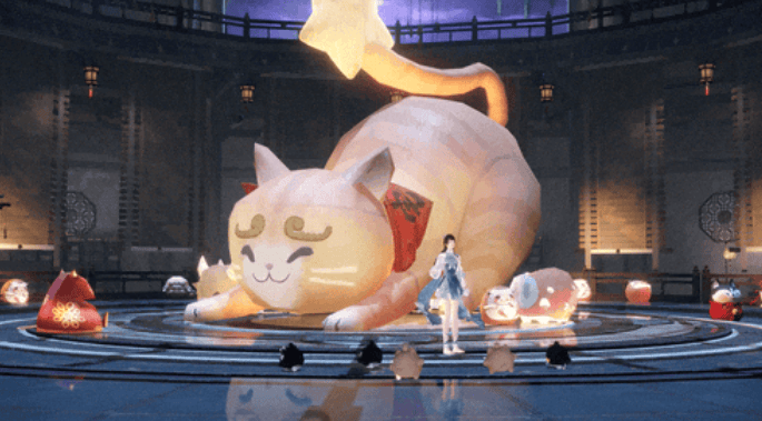 就比如这个【宅宅门】流派,你可以看到会摇摇晃晃走路的超可爱盆栽,一朵靠近就能变成千纸鹤的花,还有喵喵弹弹乐超萌设施。不仅如此,宅宅门还拥有一群超可爱的【喵喵】,当你跳舞时,它们会在你面前摇摆并挥舞荧光棒,为你加油鼓劲!没有什么是狠狠吸猫解决不了的,如果有,那就一口气吸N只!
