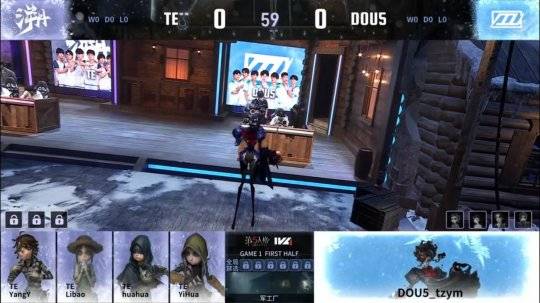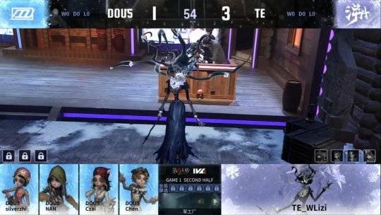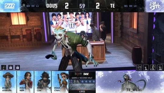 DOU5的求生者选择了杂技演员、调酒师、佣兵、舞女;TE的监管者WLizi选择了时空之影。(BAN先知、空军、大副、勘探员)