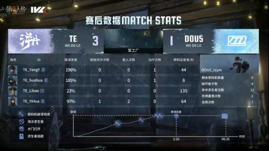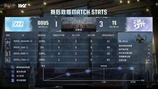 2024年8月4日,第五人格IVL夏季赛常规赛第九周第三日的比赛开始。在当天的比赛中,TE以 2胜0平0负(10:6)的战绩击败了DOU5,以下是本场比赛战报。