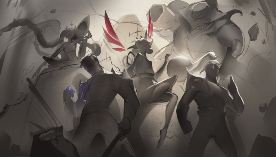 参与T1冠军皮肤原画制作的美术师Alsie,今天也在个人推特上,分享了有关这张原画的概念设计。她表示这个皮肤的五个角色形象,实际上设定为从一副石雕画中被再次雕刻出来,因为我们可以从杰斯和奥莉安娜的腿上,看到明显的石雕痕迹,美术师特地留了石头的色泽作为对比。sara只能说,这个创意简直绝了,从石雕画中雕刻出来的5个英雄。