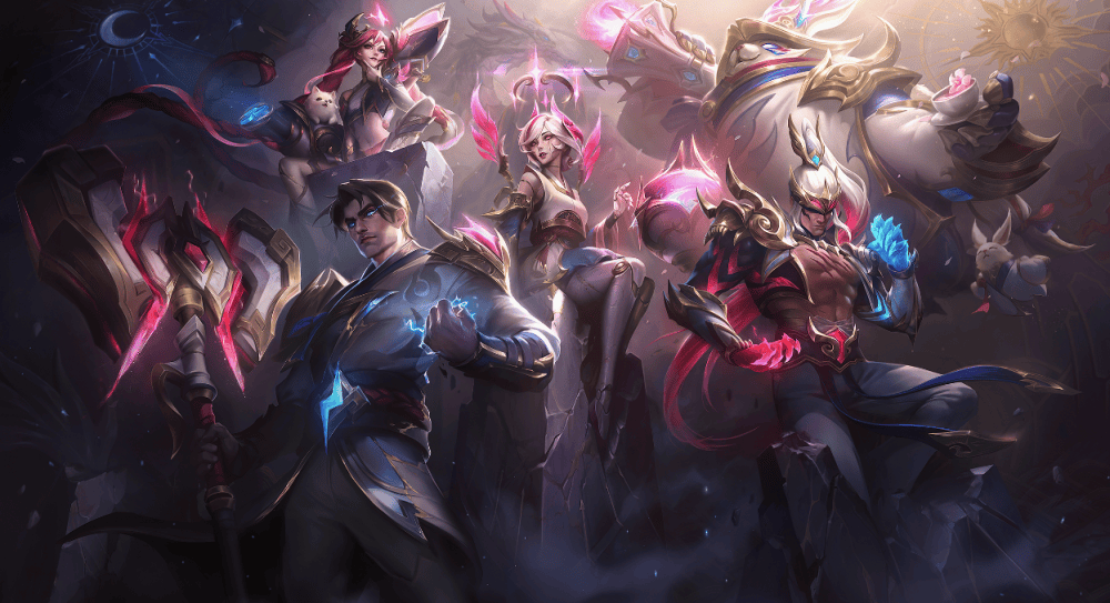 他们之所以选择石雕画这个概念,还有一个其他的原因,那就是Faker和SKT曾经三次夺得世界冠军,他们已经是韩国电竞的永恒荣耀。而他们破石而出的那副石雕画,名字是“日月五峰图”,我们在T1冠军皮肤原画中,可以看到左侧月亮和右侧太阳的标志,正是这幅画的经典元素,“日与月,映五峰”。