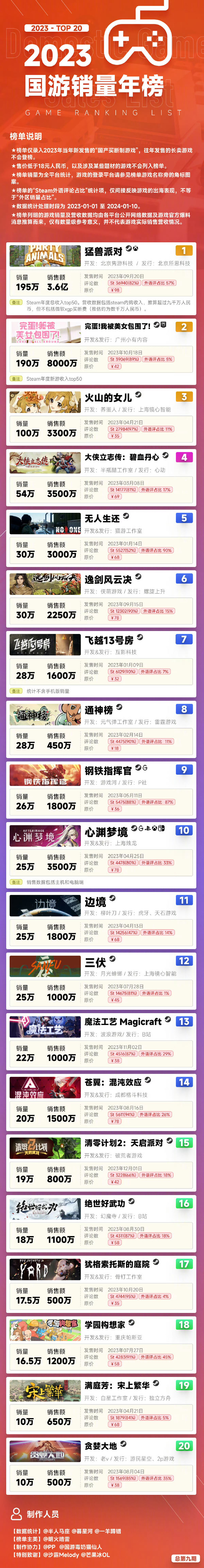 以下为2023国产游戏销量完整榜单:
