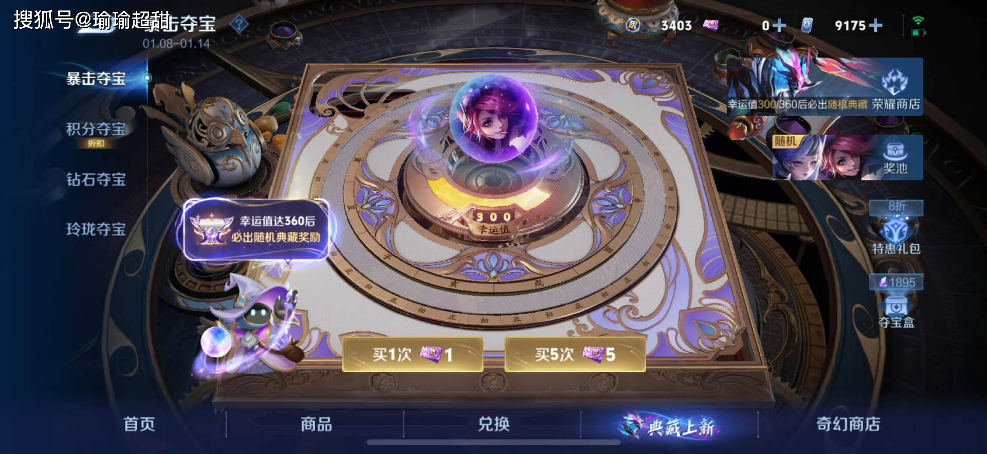 所以这个暴击夺宝并没有大家想象中的那么完美,其实还是差不多的,只是运气好的时候可能只需要 900 多就可以拿下一款典藏奖励。