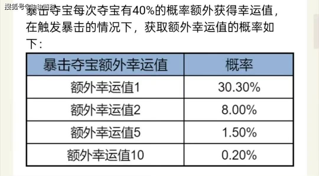 所谓的暴击夺宝,就是每次抽奖的时候,有概率能够获得暴击次数。简单来说就是每次抽奖,你的幸运值都有可能会额外增加,最多可以增加到 10 点。不过 10 点的概率确实比较低。