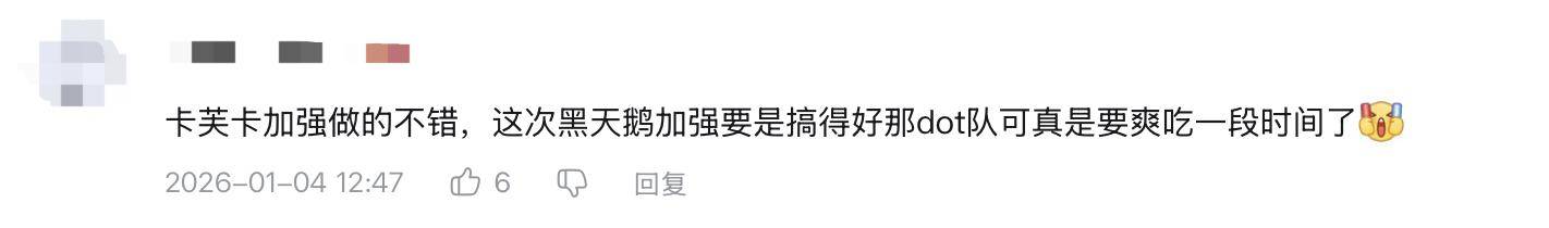 像上次加强的卡芙卡、银狼,上线后的强度表现都很不错,两年前上线的卡芙卡目前依旧是dot队的主要成员,角色保值真不是嘴上说说的。