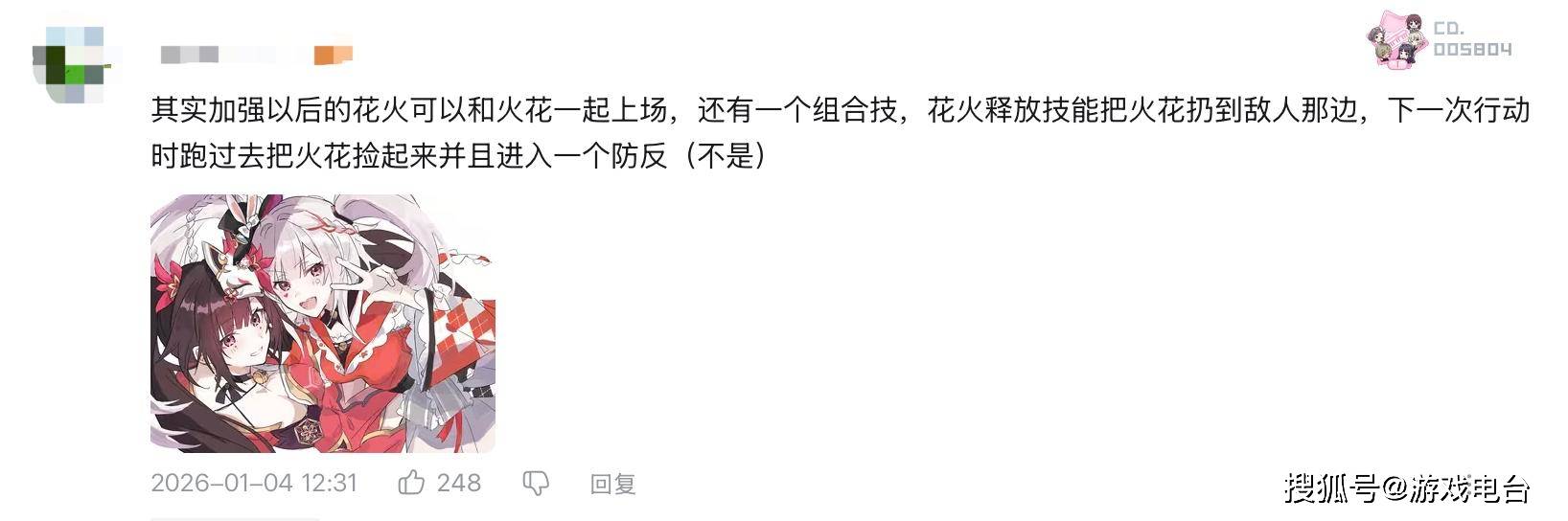 而且比较有意思的是,4.0版本将上线火花,也就是花火的sp形态,虽然现在还不知道火花的技能机制和定位,但在这个节点加强花火,很难不让人畅想在4.0版本看到两个花火同队的场景,实在是太欢愉了。