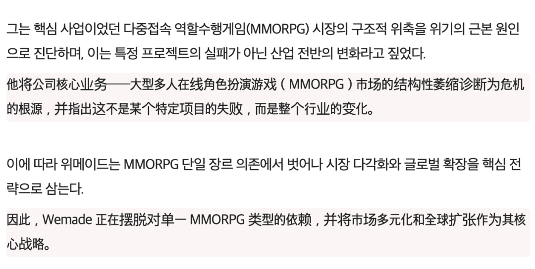 哪怕是 MMORPG 的根据地韩国,也诞生了“MMORPG 是行业陷阱”的观念。2026 年 1 月 2 日,当年用一部《热血传奇》征服中国市场的娱美德也低了头,CEO 朴冠浩在新年致辞中表示,娱美德的困境,在于核心业务——MMORPG 市场的结构性萎缩。
