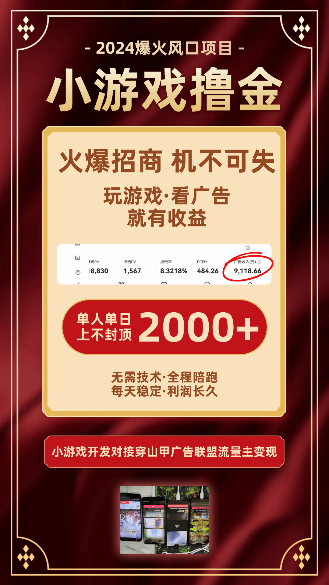 整个链条包括:广告主 -> 广告联盟 -> 游戏投放 -> 用户点击观看 -> 产生收益。