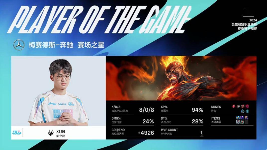 没有卢锡安但有火男!LPL揭幕战Xun超神砍下MVP