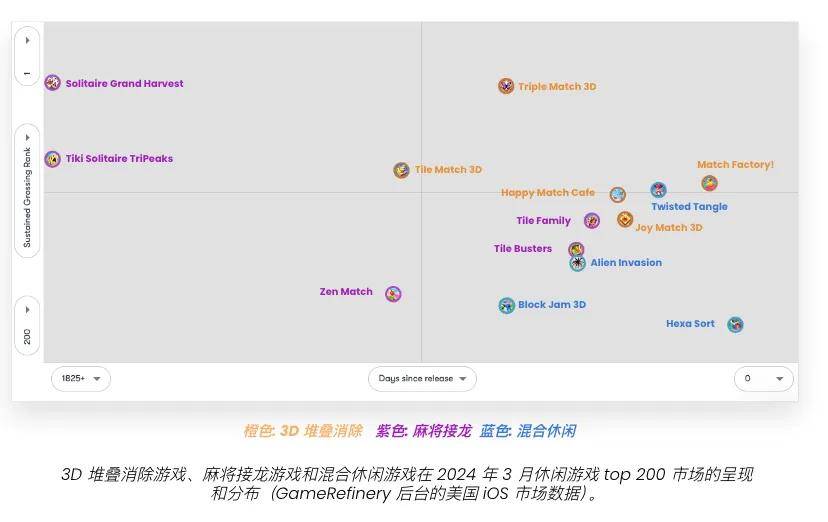 在2023年,像《Match Factory!》和《Tile Match 3D》这样的3D 堆叠消除游戏在益智游戏市场中建立了核心竞争力。而麻将接龙游戏正在更新布局和设计,通过升级其活动策略及全新的元素和核心玩法组合为市场注入活力。混合休闲游戏的发展势头强劲,这些游戏专注于简单、巧妙的游戏玩法,结合广告变现和应用内购,通过多样化的游戏功能和元数据层(meta layer)解锁变现潜力。