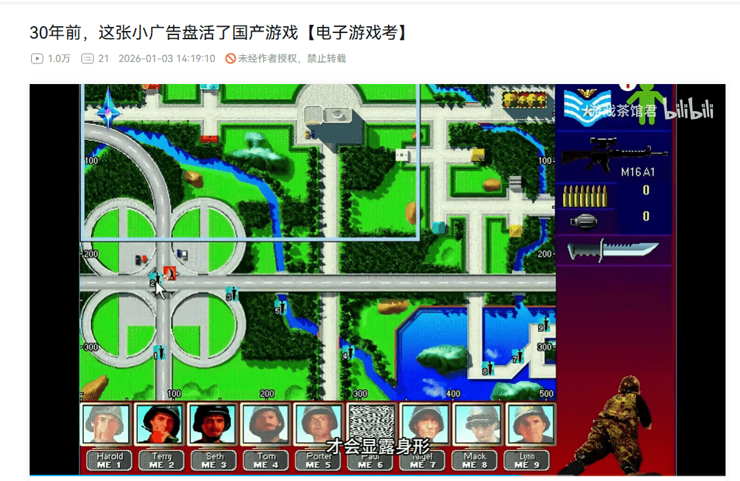 中国第一款游戏《神鹰突击队》图源B站@游戏茶馆君