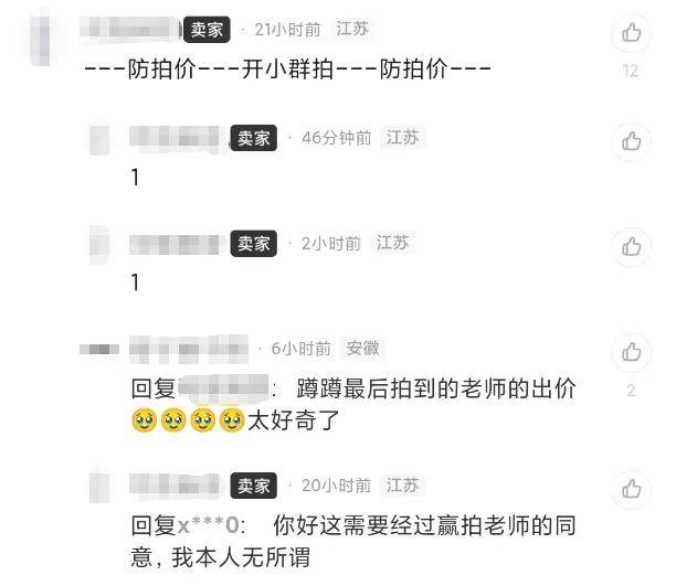 而在该拍卖单的评论区,卖家也是亲自下场维持秩序,表示后续拍卖,会在一个有许多真心想要它的《原神》玩家的小群里进行,至于后续是否公布成交价,卖家表示需经过赢拍者的同意。