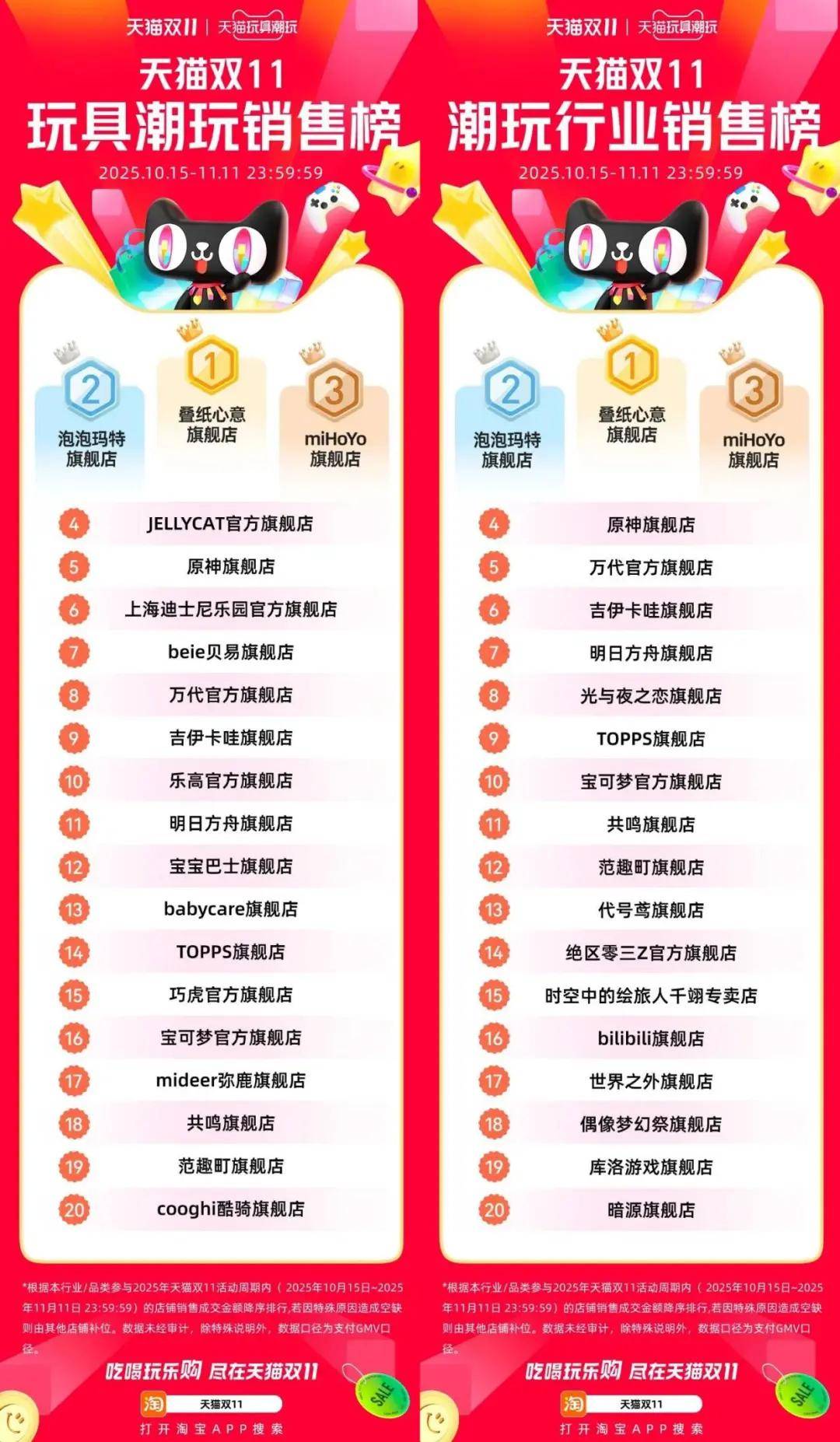 其实像《原神》《崩坏:星穹铁道》《明日方舟》《恋与深空》《第五人格》这类头部游戏产品的周边,销量始终很可观,特别是年节促销时,基本相关店铺都会冲到潮玩店铺销量榜前几名,和头部潮玩公司一决雌雄。