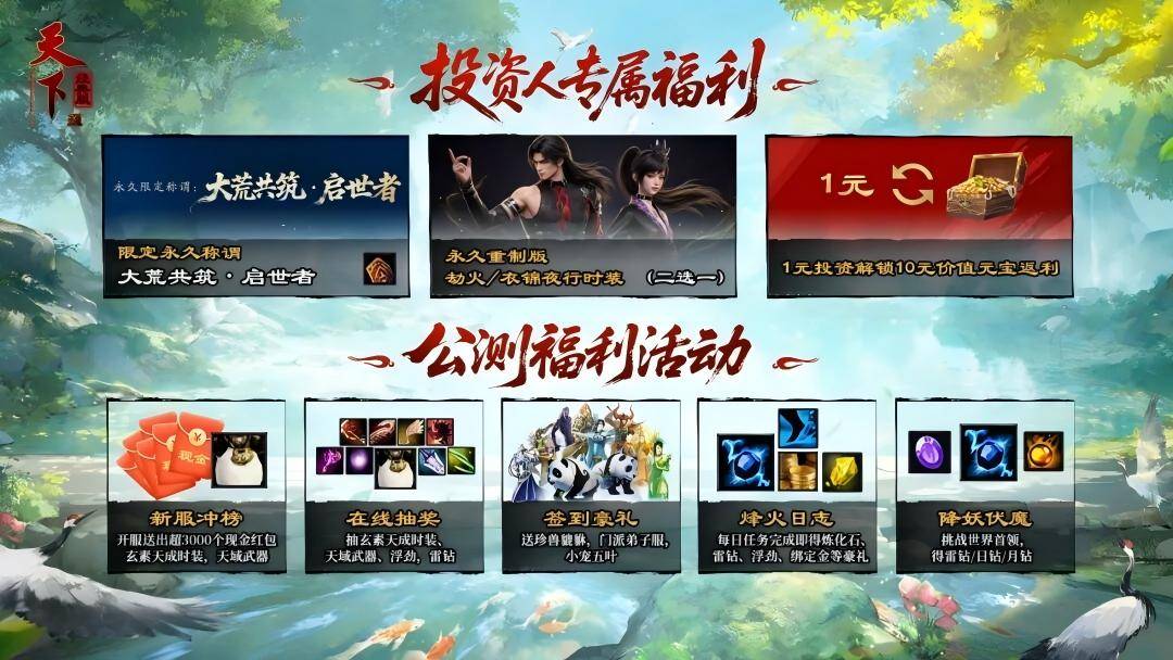 为了让新老玩家更好地重温当年的大荒记忆,《天下贰·经典版》还特别准备了五大公测福利活动,大家不仅有机会拿到绝版外观“玄素天成”套装,还能通过每日签到的方式获得大量资源。可以说,在这份福利的加持下,无论是回归的老玩家还是初入大荒的新少侠,都快速融入这个充满生机的大荒世界,开启属于自己的全新篇章。