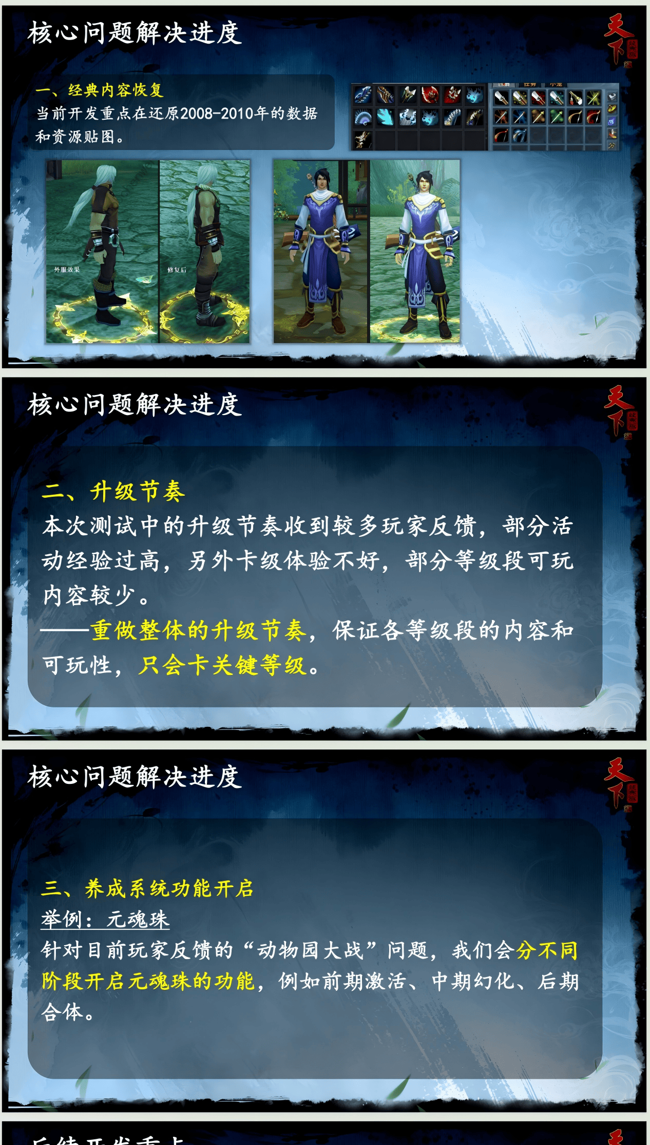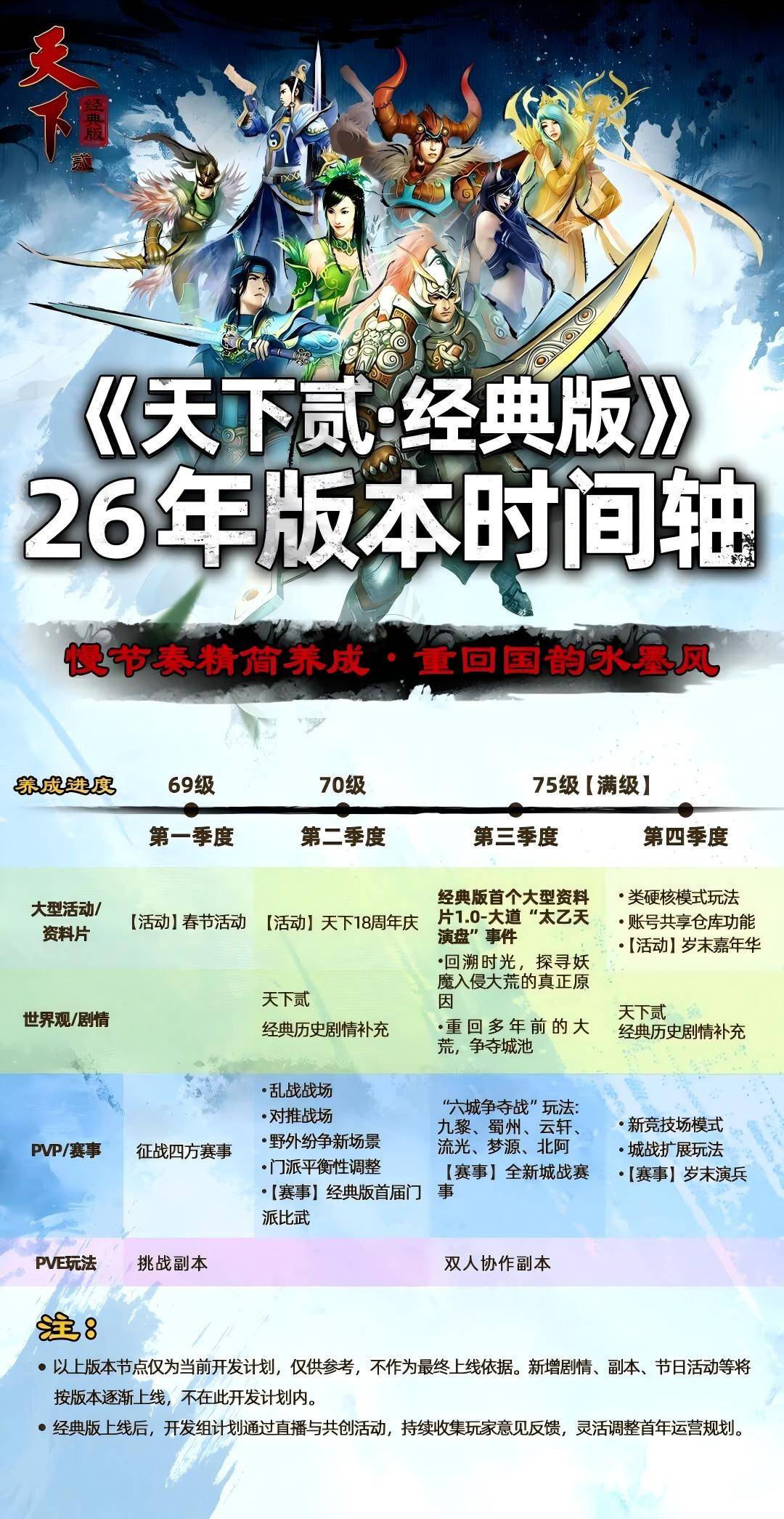 与此同时,《天下贰·经典版》开发组还向所有玩家公示了当前阶段关于《天下贰·经典版》开发规划。首年开发规划中不仅包含大型资料片、PVP赛,还有世界观剧情补全、经典玩法复刻等内容,这份诚意满满的规划正在以实际行动,欢迎每一位玩家回家,让这场跨越十七年的大荒之约,在Z时代焕发出更温暖的光彩。