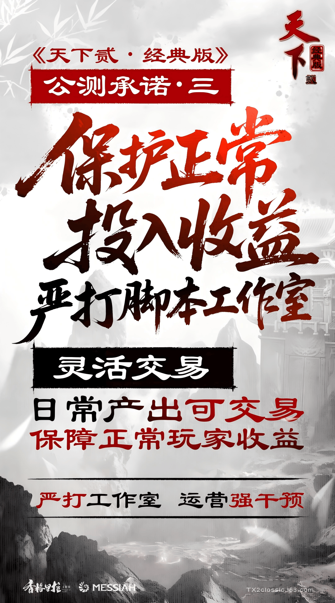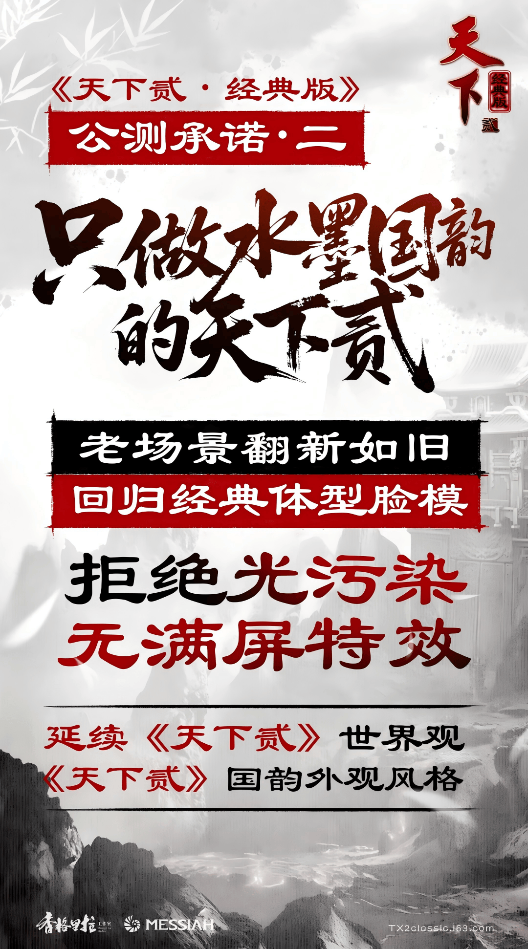 对于见惯了喧嚣的天下玩家而言,真正的诚意从不在于口头承诺,而在于游戏本身。正因如此,《天下贰·经典版》在正式启程前,便率先亮明了它的三大核心承诺。这不仅是一份给所有玩家的保障,更是对那个值得沉浸与探索的纯粹大荒,最深情的回归宣言。