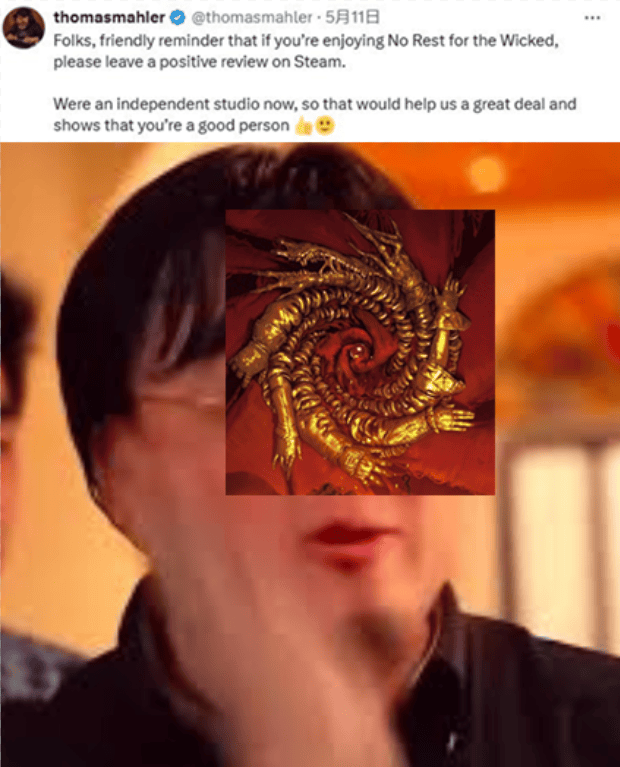 这位叫“托马斯”的哥们,为宣传游戏发了条推特,意思就是《暗黑破坏神4》和《流放之路2》手残都能玩,真正的技术党应该来玩《恶意不息》——好强的“社区婆罗门”味,一个游戏制作人,竟然在公开拉踩竞品游戏?