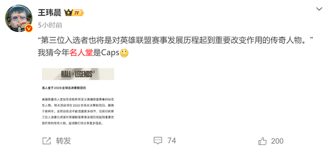当然Caps入选名人堂也只是停留在猜测的层面上,拳头负责人此前也在采访中表示他们的评选没有固定轮换或顺序一说,究竟谁能入选可能还是未知数。网友们怎么看这件事呢?欢迎在下方评论区留言,分享自己的看法。