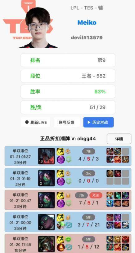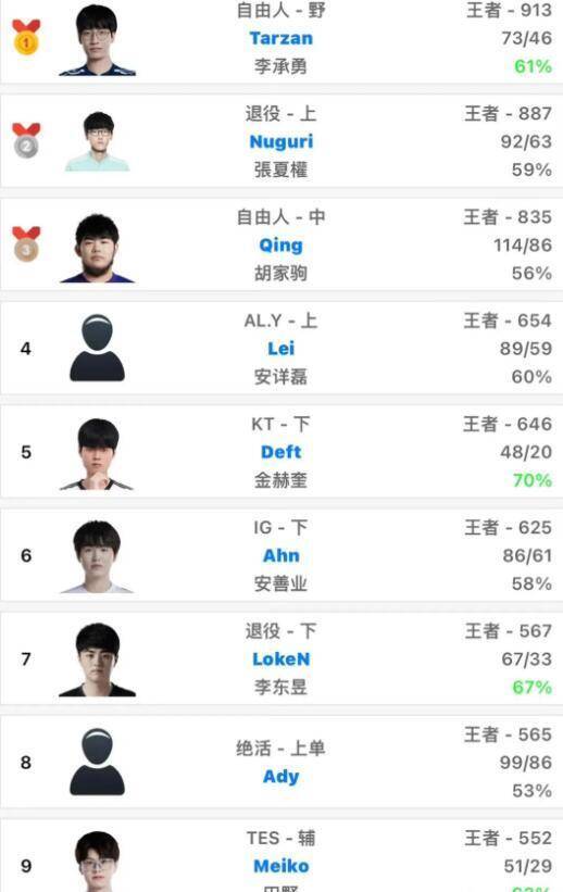 确实是有,现在前十名里面有一些LPL的选手,还有一些是自由人,而最近又有一位选手打进了韩服前十,他就是meiko,Meiko以王者552点的分数排到了韩服第九的位置,是目前辅助位置的最高分数。