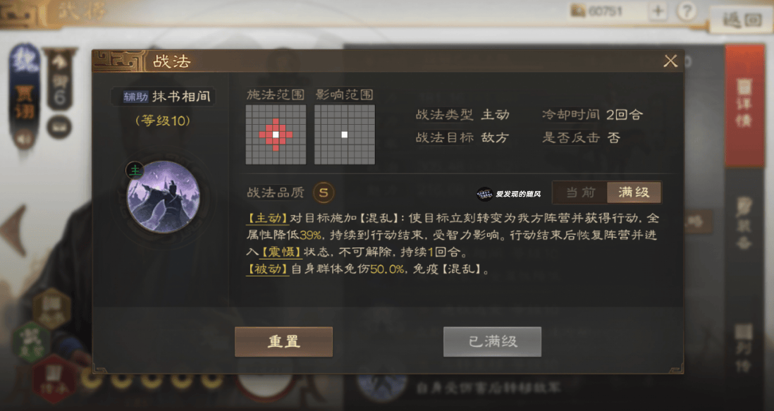 拆解系数:8.5(非常适合召唤武将携带的战法,但贾诩本体更好用)