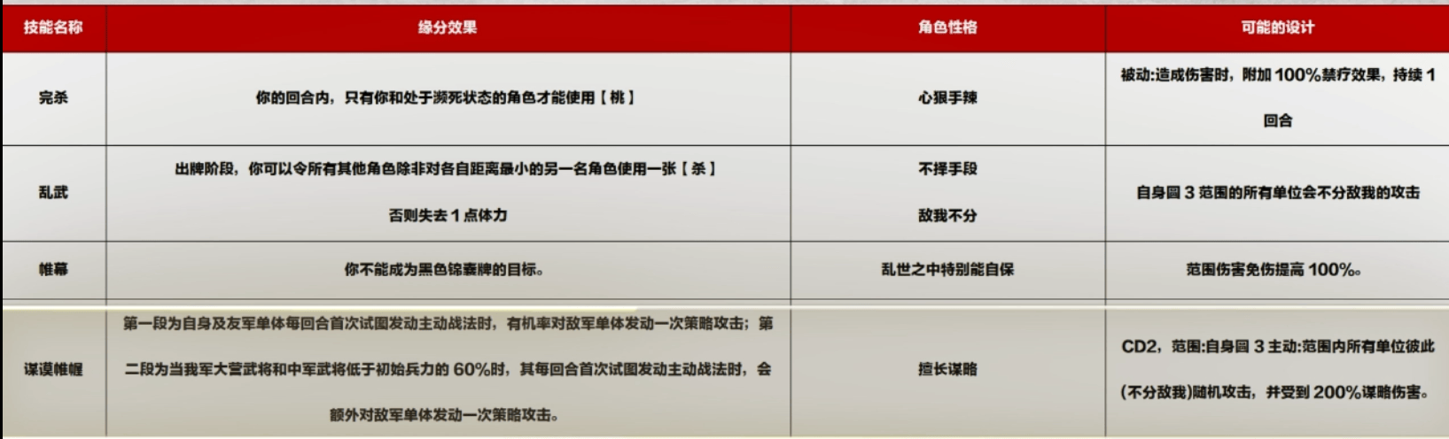 在参考了一些三国游戏贾诩的技能如完杀、乱武、帷幕、谋谟帷幕等后结合内测玩家的反馈和贾诩人物特征,最终敲定了最后这一版战法。